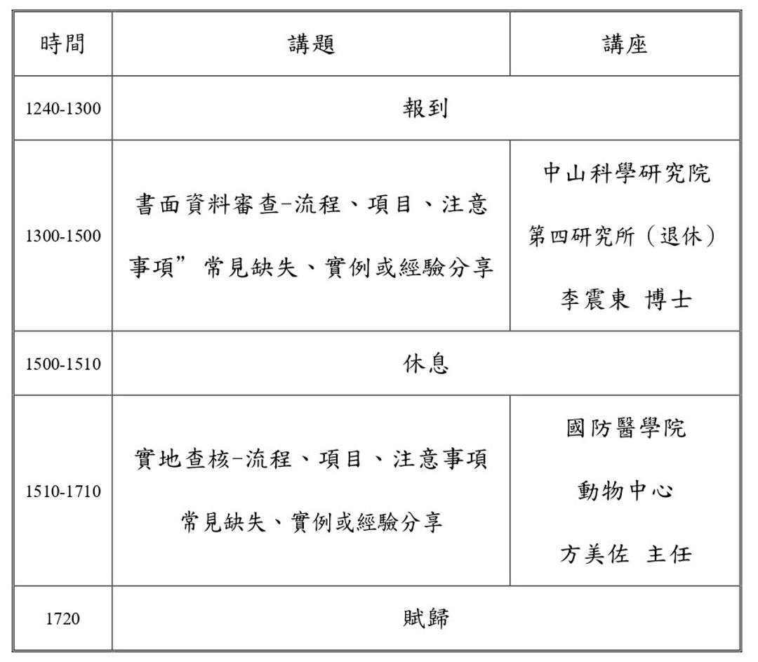中華實驗動物學會114年動物科學應用機構外部(監督)查核訓練課程