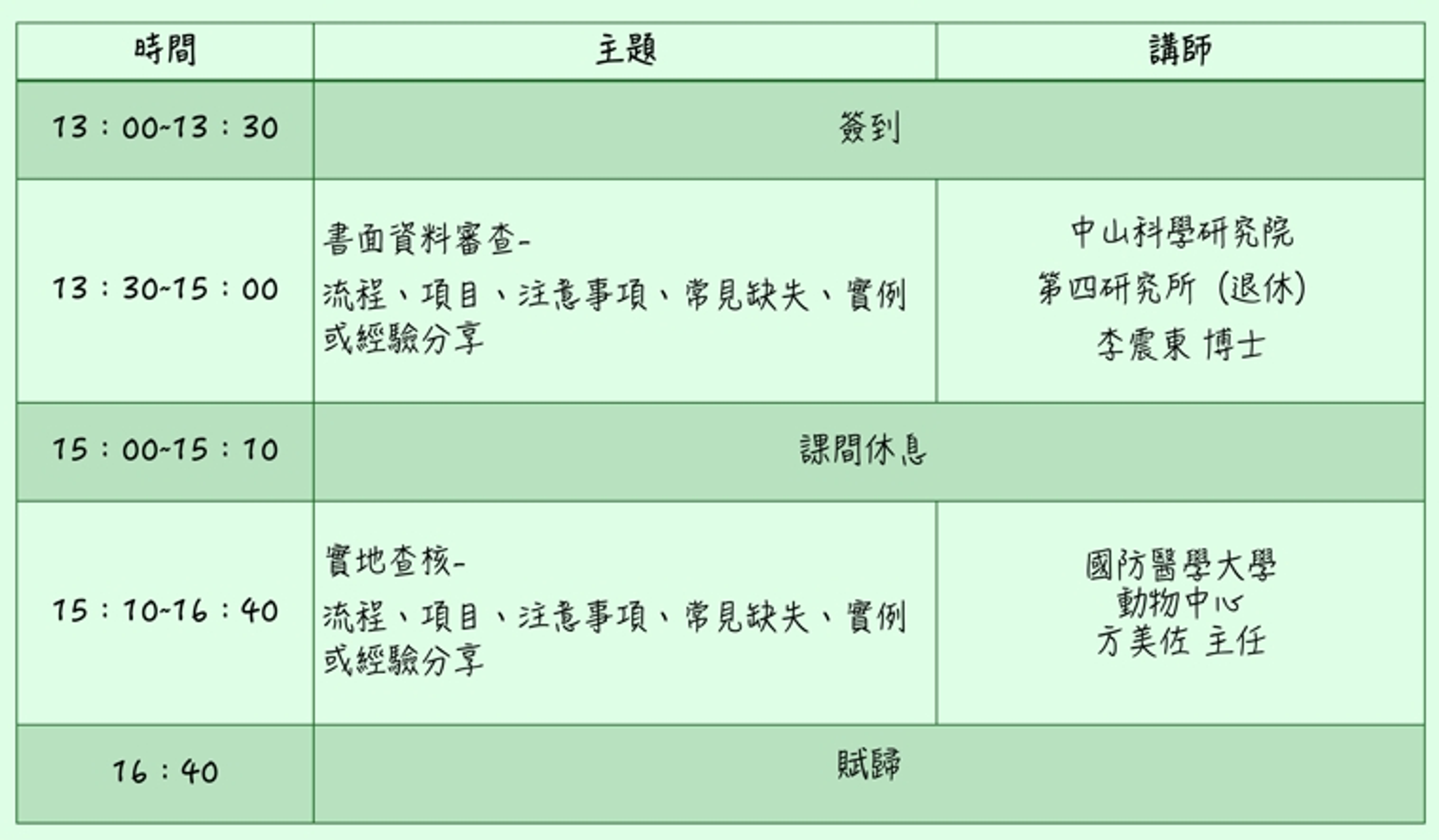 115 年動物科學應用機構監督查核實務作業經驗分享