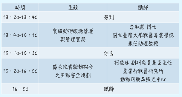 115年生物安全實驗室與動物設施管理研習課程